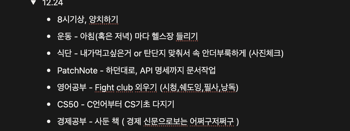 미리알림 (혹은 공책)에다가 하루 한거 적어놓기