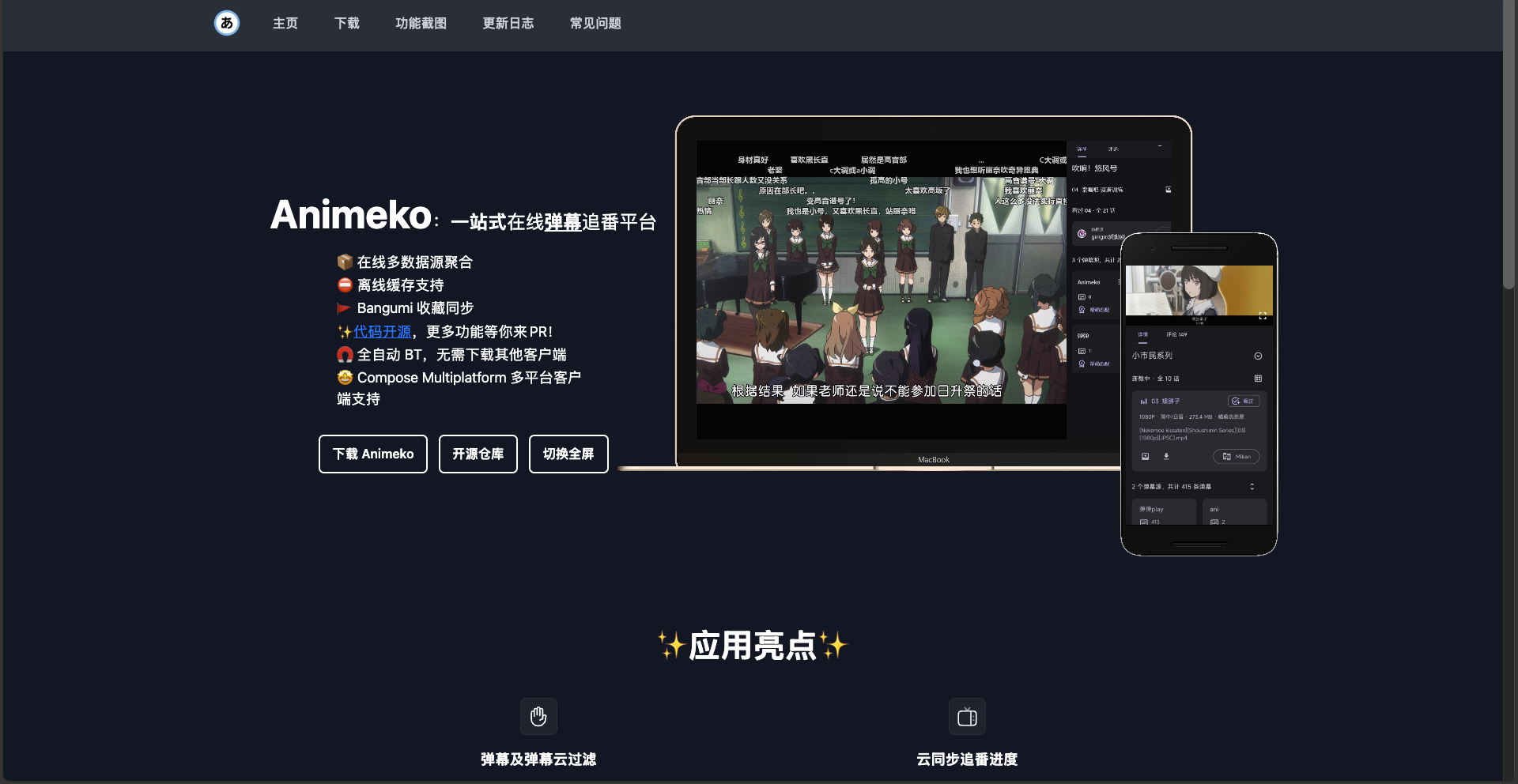 Animeko는 애니메이션을 한 곳에서 검색, 추적, 시청할 수 있는 일체형 플랫폼으로, Bangumi와 연동된 클라우드 동기화, 다중 비디오 소스, 오프라인 캐싱, 댓(弹幕) 기능을 제공합니다. 안드로이드, iOS, Windows, macOS, Linux 등 모든 주요 플랫폼을 지원하며, Kotlin 멀티플랫폼과 Compose UI를 기반으로 제작되었습니다.