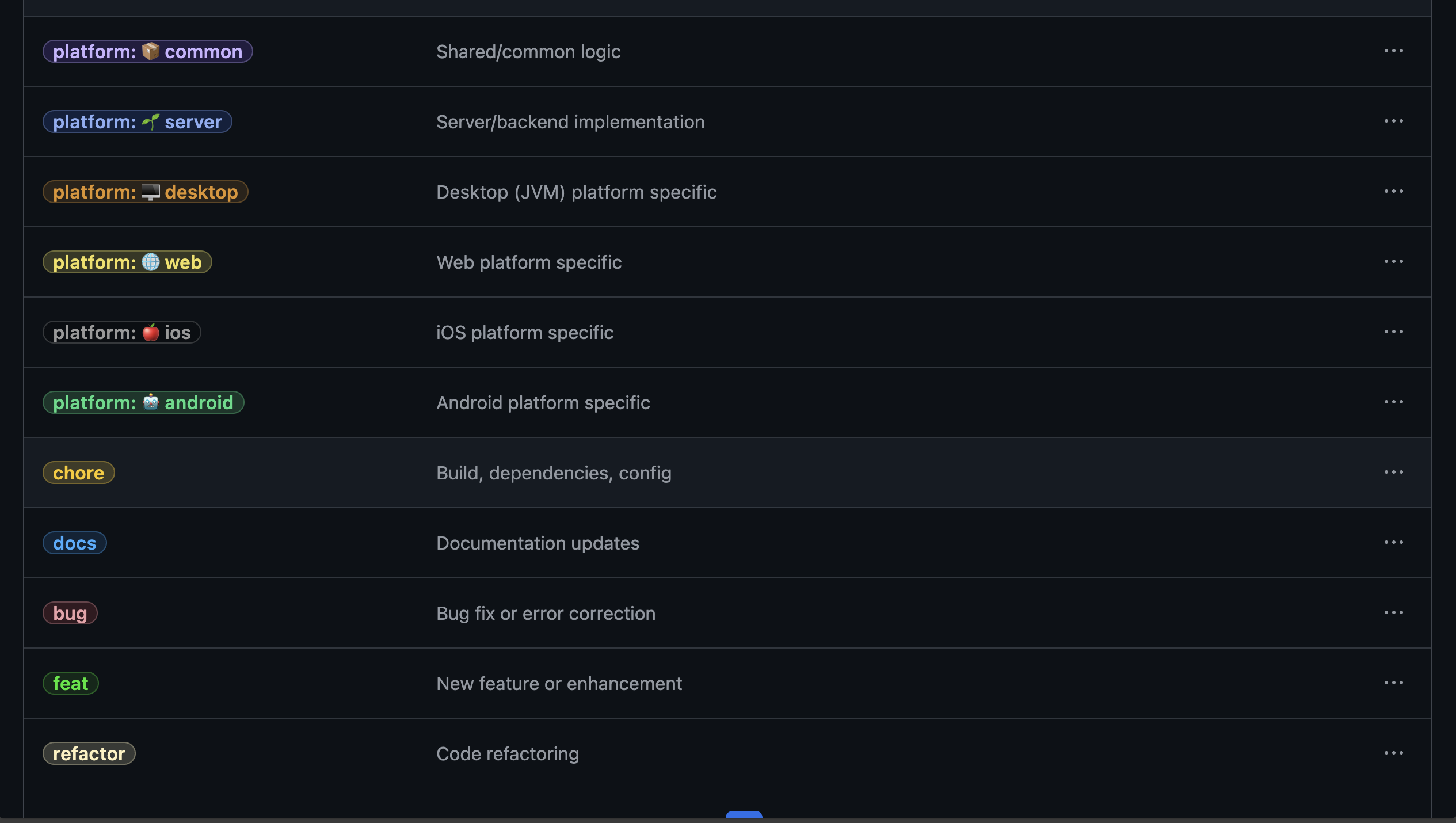 feat+platform: android→ Android 기능 추가bug+platform: server→ 서버 버그 수정docs+platform: common→ 공통 문서 작업